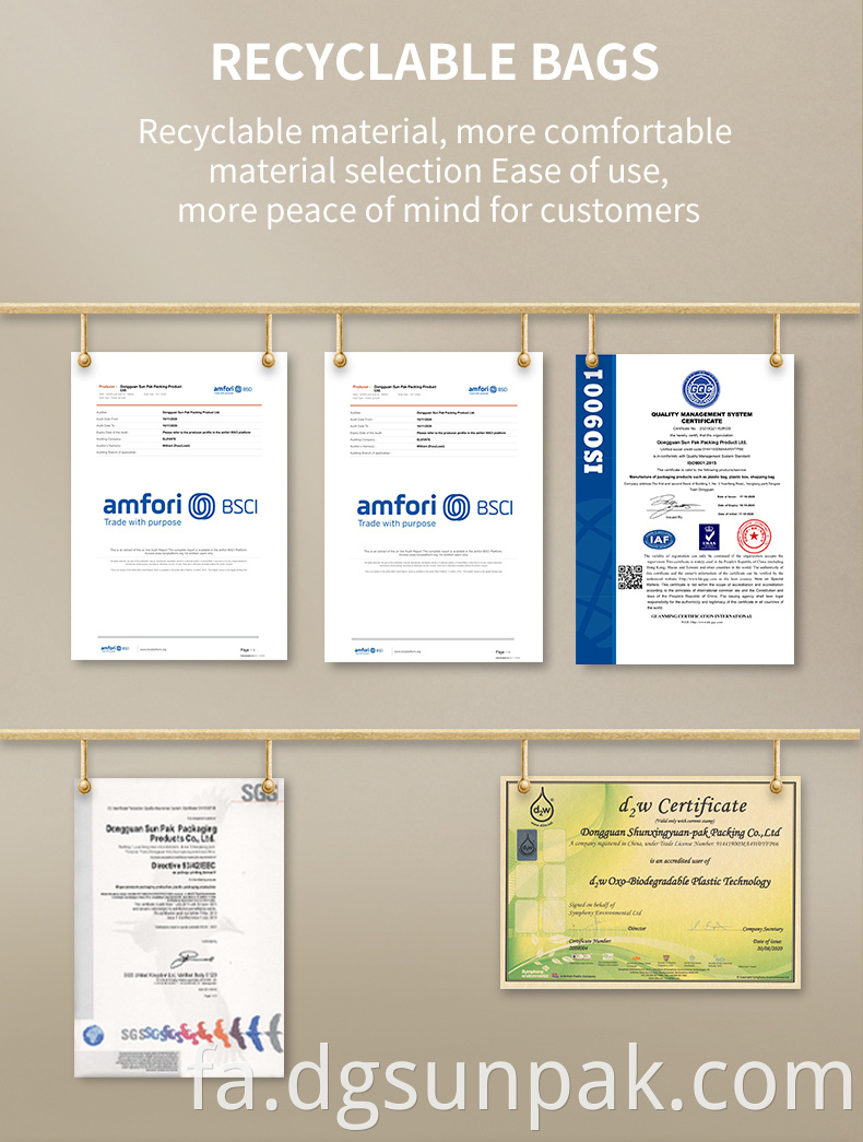 گواهی: Sedex .GRS.FSC.BSCI.ISO.GMI